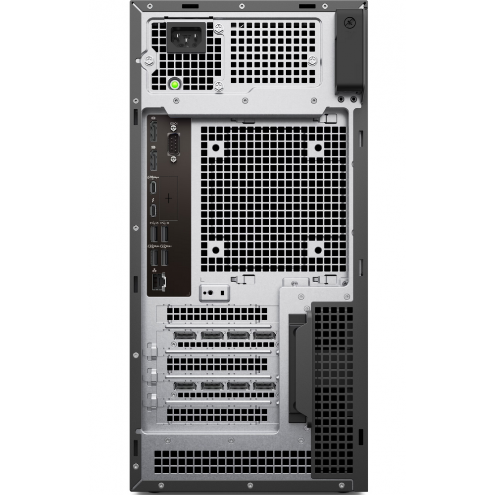 | Standard Specs And Options | ADDITIONAL SPECS & OPTIONS PROCESSOR1 Intel® Core™ Ultra 5 235 (24 MB cache, 14 cores, 14 threads, 3.4 GHz to 5.0 GHz, 65W) Intel® Core™ Ultra 5 245 (24 MB cache, 14 cores, 14 threads, 3.5 GHz to 5.1 GHz, 65W) Intel® Core™ Ultra 5 245K (24 MB cache, 14 cores, 14 threads, 4.2 GHz to 5.2 GHz, 125W) Intel® Core™ Ultra 7 265 (30 MB cache, 20 cores, 20 threads, 2.4 GHz to 5.3 GHz, 65W) Intel® Core™ Ultra 7 265K (30 MB cache, 20 cores, 20 threads, 3.9 GHz to 5.5 GHz, 125W) Intel® Core™ Ultra 9 285 (36 MB cache, 24 cores, 24 threads, 2.5 GHz to 5.6 GHz, 65W) Intel® Core™ Ultra 9 285K (36 MB cache, 24 cores, 24 threads, 3.7 GHz to 5.7 GHz, 125W) OPERATING SYSTEM Windows 11 Home Windows 11 Pro Windows 11 Pro National Academic Windows 11 Enterprise Ubuntu® Linux® 24.04 LTS MEMORY 8 GB: 1 x 8 GB, DDR5, 5600 MT/s, Non-ECC 16 GB: 2 x 8 GB, DDR5, 5600 MT/s, Non-ECC 16 GB: 1 x 16 GB, DDR5, 5600 MT/s, Non-ECC 32 GB: 2 x 16 GB, DDR5, 5600 MT/s, Non-ECC 32 GB: 4 x 8 GB, DDR5, 4800 MT/s, Non-ECC 64 GB: 2 x 32 GB, DDR5, 5600 MT/s, Non-ECC 64 GB: 4 x 16 GB, DDR5, 4800 MT/s, Non-ECC 128 GB: 4 x 32 GB, DDR5, 4400 MT/s, Non-ECC VIDEO CARD NVIDIA: NVIDIA® RTX™ A400, 4 GB GDDR6 NVIDIA® RTX™ A1000, 8 GB GDDR6 NVIDIA® RTX™ 2000 Ada, 16 GB GDDR6 NVIDIA® RTX™ 4000 Ada, 20 GB GDDR6 NVIDIA® RTX™ 4500 Ada, 24 GB GDDR6 NVIDIA® RTX™ 5000 Ada, 32 GB GDDR6 NVIDIA® RTX™ 6000 Ada, 48 GB GDDR6 NVIDIA® RTX™ PRO 6000 Blackwell Workstation Edition (600W) AMD: AMD Radeon™ Pro W7500, 8 GB GDDR6 AMD Radeon™ Pro W7600, 8 GB GDDR6 PORTS Front: 1 USB 3.2 Gen 1 (5Gbps) port 1 USB 3.2 Gen 1 (5Gbps) port with PowerShare 1 USB 3.2 Gen 2 (10Gbps) Type-C port 1 USB 3.2 Gen 2x2 (20Gbps) Type-C port with PowerShare 1 Global headset jack 1 SD 7.0 Express-card slot (Optional) Rear: 2 USB 2.0 (480Mbps) ports with SmartPower 2 USB 3.2 Gen 2 (10Gbps) ports 1 USB 3.2 Gen 2x2 (20Gbps) Type-C port 1 RJ45 (1GbE ) Ethernet port 2 DisplayPort 1.4a HBR3 ports 1 Optional port (TBT4 (40Gbps) + USB-C (10Gbps) data , DP alt-mode Type-C (10Gbps), HDMI 2.1, DP 2.1, 5Gbe LAN, 2x USB-A 3.2 (10Gbps), VGA, LC Fiber optic port) 1 Thunderbolt Port SLOTS 3 x SATA 3.5 inch HDD and 1x SATA ODD 2 x M.2 2230/2280 PCIe Gen4 slots 1 x M.2 2230/2280 PCIe Gen5 slot 1 x PEG full-height Gen5 PCIe x16 slot 1 x full-height, half-length Gen3 x4 PCIe closed-end slot 1 x full-height, full-length Gen4 x4 PCIe open-end slot 1 x full-height, full-length Gen3 x4 PCIe open-end slot POWER Power supplies 360W internal power supply unit (80PLUS Platinum Certified) 500W internal power supply unit (80PLUS Platinum Certified) 1500W internal power supply unit (80PLUS Platinum Certified) HARDWARE SECURITY 1 Kensington security-cable slot 1 Padlock loop 1 Lockable Cable Cover (optional) 1 Lockable Bezel and Key for Front Accessible SATA HDD (optional) Chassis intrusion switch Trusted Platform Module TPM 2.0 Intel Integrated TPM ADD-IN CARDS Intel® Ethernet Network Adapter x710-T2L GbE NIC Card (Base-T) Intel® Ethernet Converged Network Adapter X710-DA2 GbE NIC Card (Optical, requires SFP+ transceivers) Serial PCIe card WLAN External Antenna AIC Zoom2 Gen4 card |